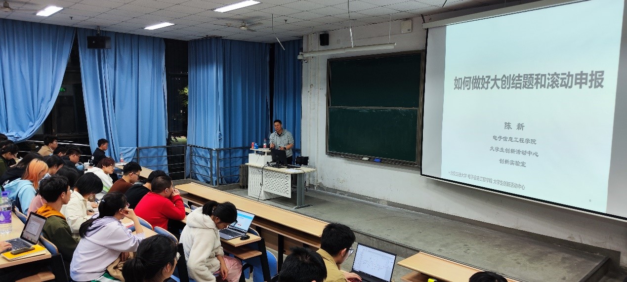 10月26日晚,电信学院在YF303举办了大创宣讲会——如何做好大创结题和滚动申报,邀请学院专业教师陈新为160余名同学介绍创新创业项目。