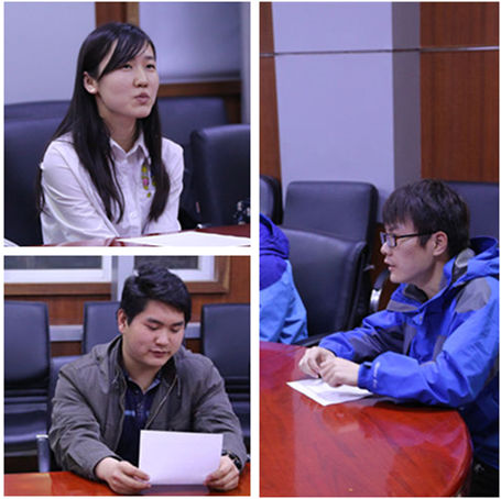 首先,韩柏涛为各位学生代表介绍了高校学生思想政治调研工作的相关情况,并就各个问题作出简要解读。随后,学生代表各抒已见,表达了自己对政治时事等问题的看法,思路清晰,表达流畅。学生代表陈柯汶提出,国家的反腐力度可以说达到历史之最,人民群众是最大的受益人。学生代表贾琳认为网络改变了世界,谁不能离开网络,网络为大家提供了无限便利。学生代表陈燕结合深化教育领域综合改革的措施,谈到根据学生个人喜好来选择高考题目十分人性化,更利于学生的自我成长,实现人生价值。
