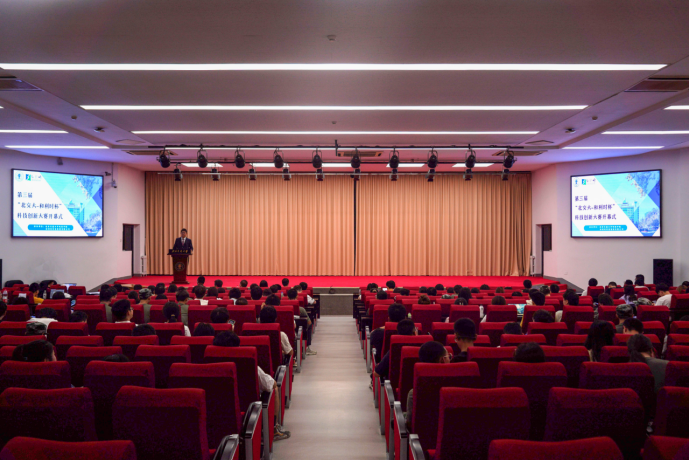 7月11日下午4时,电信学院联合和利时公司在九教中心报告厅举办第三届科技创新大赛开幕式。北京和利时系统工程有限公司副总裁兼总工程师汪小亮、电信学院党委副书记韩柏涛、学工办主任冯麟淞、团委书记崔宇康、辅导员覃正宇与学院300余名本科生共同参加开幕式。