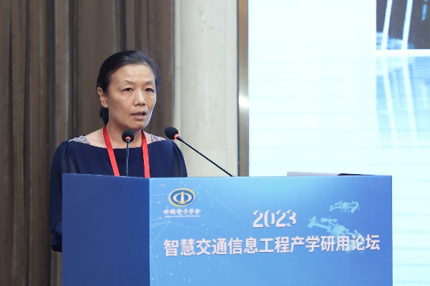 中国电子学会副理事长兼秘书长陈英首先作大会致辞。陈英秘书长对各位参会嘉宾表示诚挚地欢迎和衷心地感谢,他指出智慧交通在未来交通领域发展中的重要性和必然性,希望可以通过本次论坛进一步促进产学研交流,为交通事业的发展贡献力量。