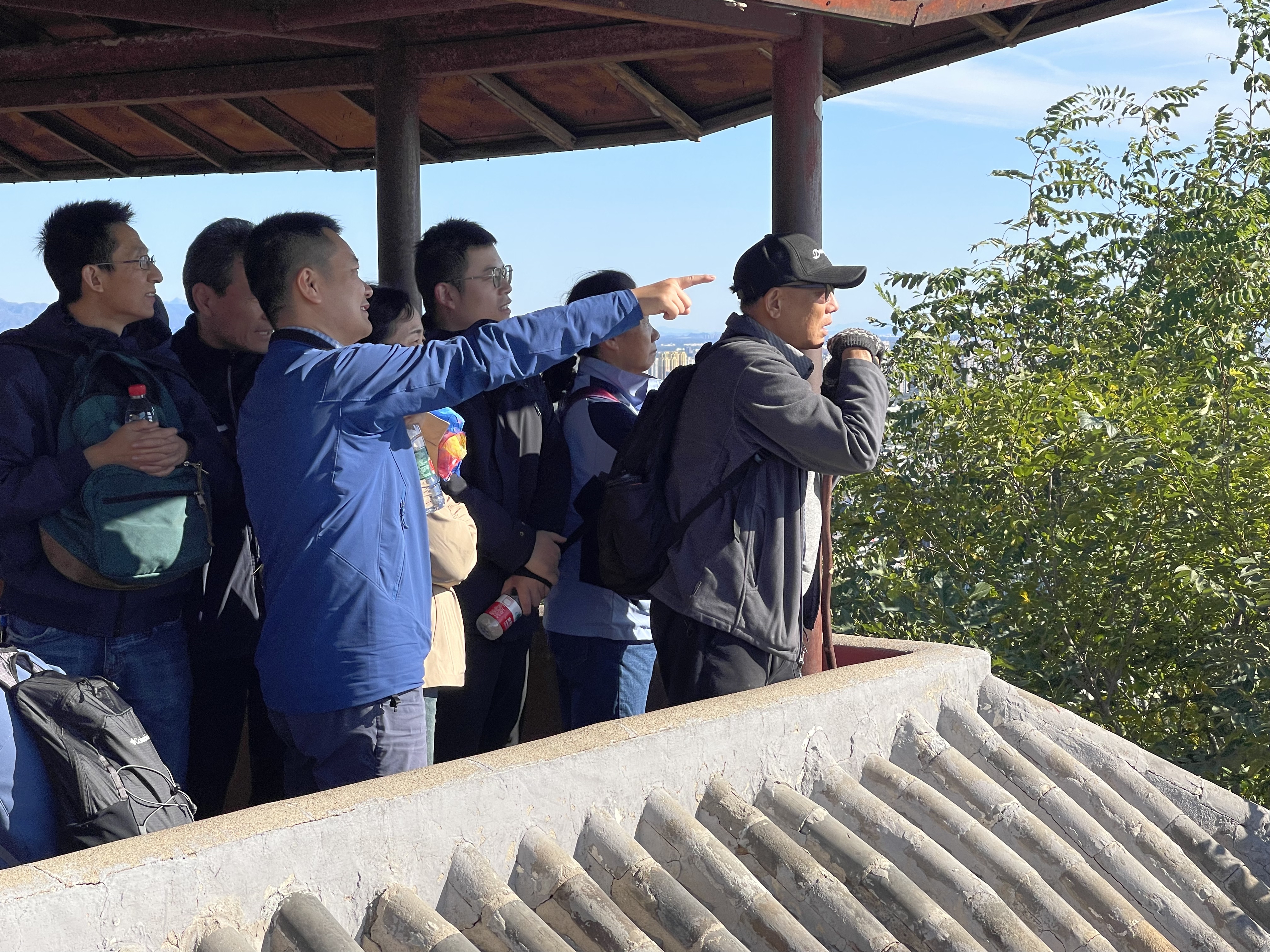 老师们结伴而行,兴致高涨,很快就登顶百望山。大家在这里极目远眺,京城诸多地标建筑尽收眼底。