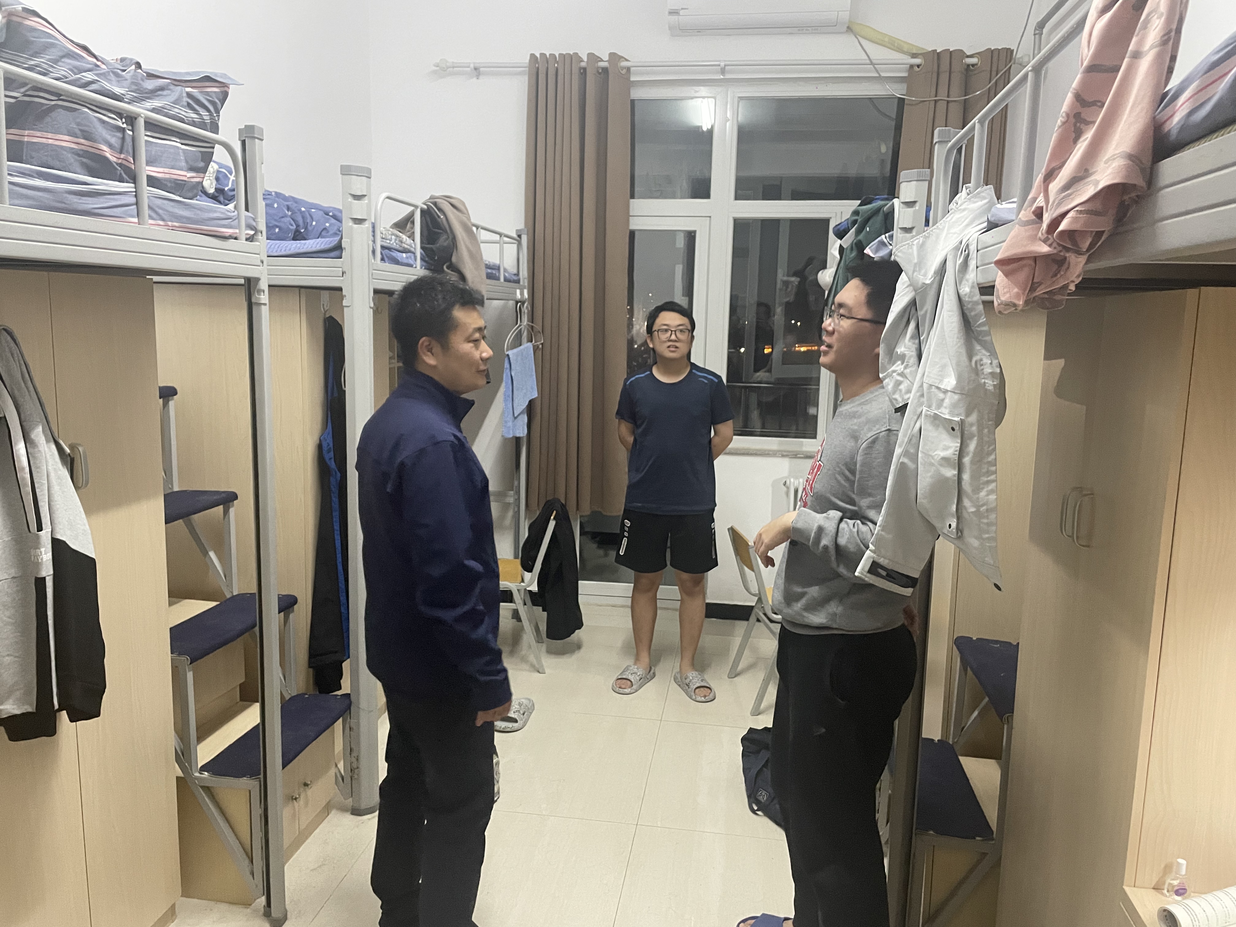 10月26日晚上,韩柏涛和崔宇康走访第二学士学位学生宿舍,与宿舍同学交流沟通,了解日常学习生活情况,针对学生提出有关就业、考研等问题给予解答。