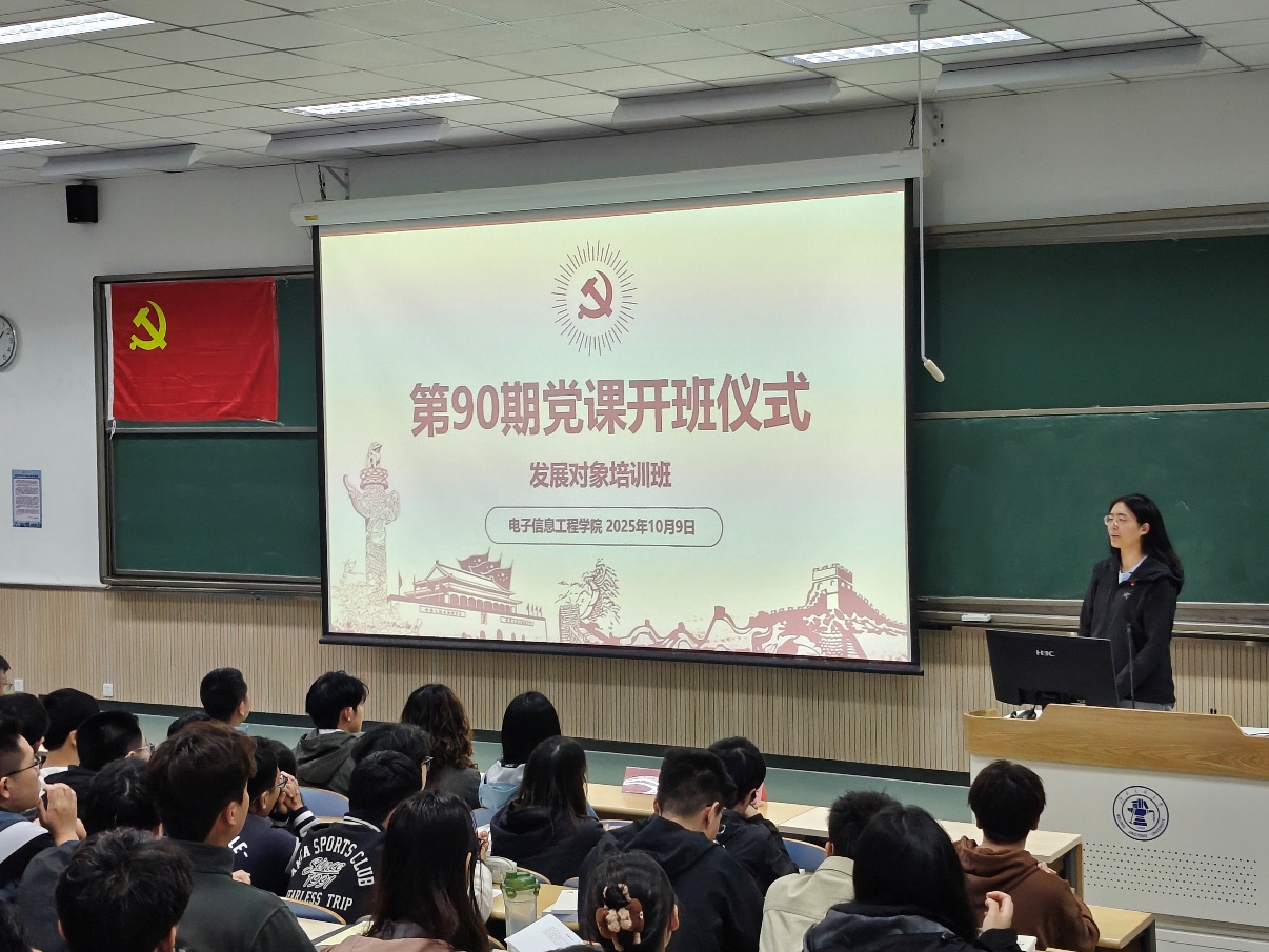 2025年10月9日下午,电信学院分党校第90期发展对象培训班开班仪式在九教中102举行。学院党委书记刘东平,党委副书记韩柏涛,党委副书记、副院长刘留,学院本、研全体辅导员以及130余名师生发展对象参与本次开班仪式。开班仪式由张欣煜主持。
