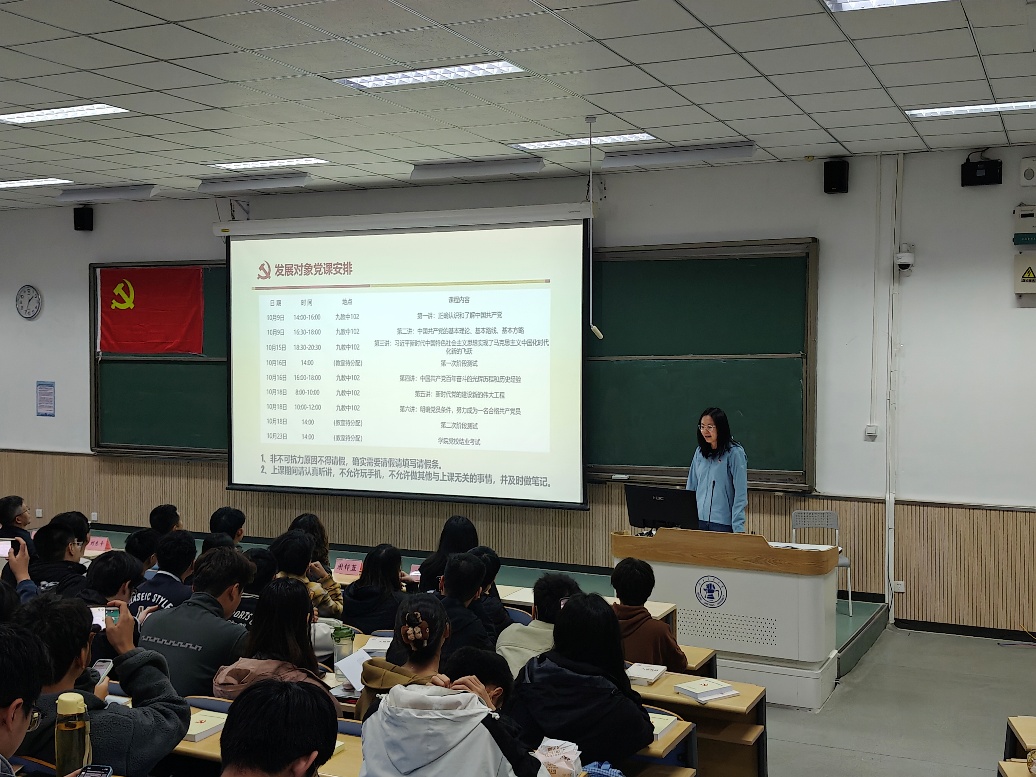 首先,学院学工办主任、本科生第一党支部书记冯麟淞详细介绍培训班的安排和要求。希望学员们端正学习态度,按时参加集体授课,遵守培训要求。