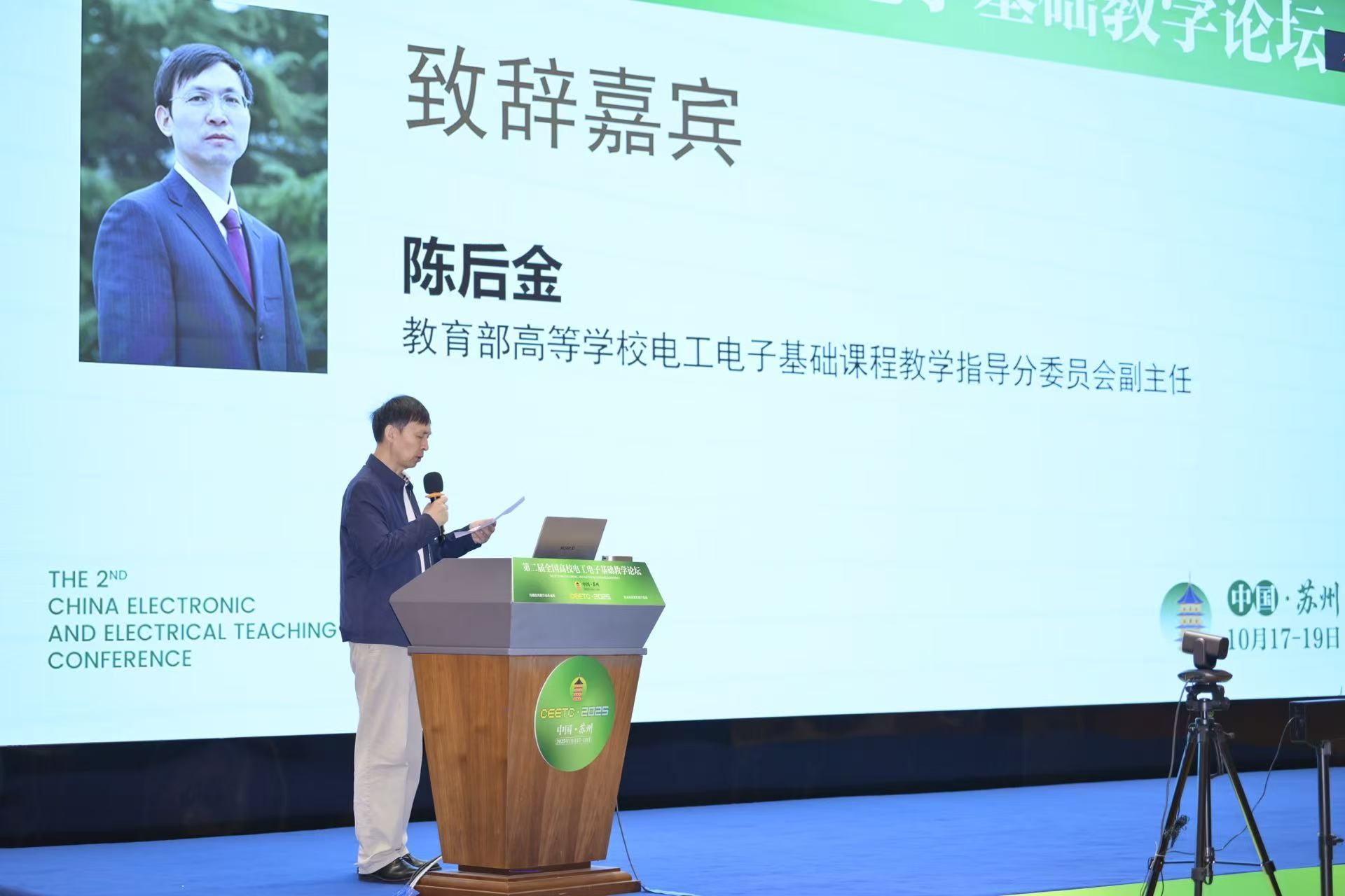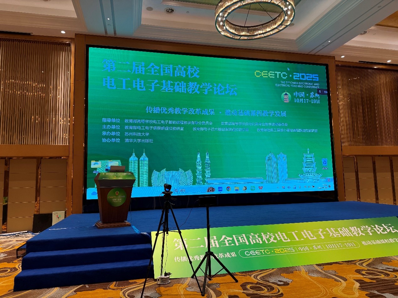 2025年10月17至19日,在教育部高等学校电工电子基础课程教学指导分委员会与教育部高等学校自动化类专业教学指导委员会的指导下,由教育部电工电子课程群虚拟教研室、教育部电子技术基础课程虚拟教研室、教育部信息工程核心基础课程群虚拟教研室举办的“第二届全国高校电工电子基础教学论坛”在苏州召开。来自全国高校的200余位教师代表参会,电信学院教授、国家级教学名师陈后金教授作主题论坛报告,邵小桃教授参加了本次会议。