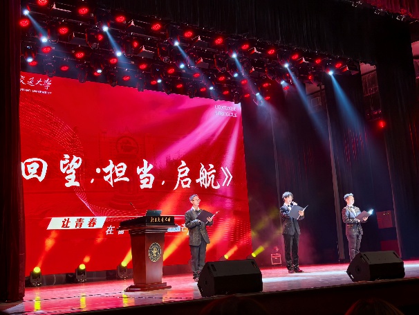 谈振辉老校长带领同学们回顾解放后学校若干发展节点,让同学们对学校的悠久历史更加深刻全面的认识,因交大人的身份而自豪。刘东平书记讲述从抗战精神到科技强国的微党课,引导同学们树立正确的政治信仰与价值观念。志愿者崔若冰分享了在纪念中国人民抗日战争暨世界反法西斯战争胜利80周年大会中的志愿者经历,激励同学们为国家发展贡献青春力量。朗诵《青春逐梦,强国有我》引导同学们不忘初心,勇担使命,绘就未来。
