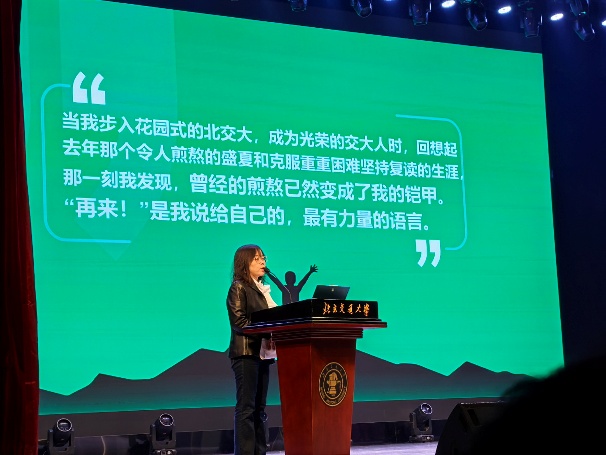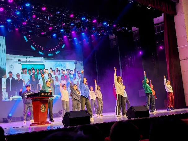 学校党委常委、副校长艾渤分享个人求学与发展经历,希望同学们可以在大学中练就真本领、学习真学问,积极投身中国式现代化。校友孙玉兰希望同学们明确自己的未来规划,创造美好的生活。最后,2025级辅导员和班助带来歌舞表演《失恋阵线联盟》点燃全场。