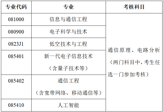 学科专业能力考核采用综合面试方式,考生从通信原理或电路分析两门科目中,任选一门参加考核。主要考核专业知识基础、知识结构及学术研究能力等。该项考核成绩满分100分。成绩低于60分的考生,不得录取。面试方式、时间和地点将提前5天在学院网站通知。考核时间预计为2026年1月。