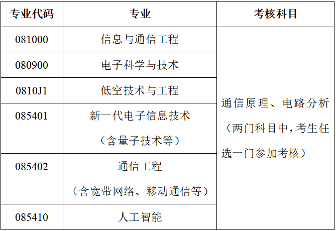 学科专业能力考核采用综合面试方式,考生从通信原理或电路分析两门科目中,任选一门参加考核。主要考核专业知识基础、知识结构及学术研究能力等。该项考核成绩满分100分。成绩低于60分的考生,不得录取。面试方式、时间和地点将提前5天在学院网站通知。考核时间预计为2026年1月。