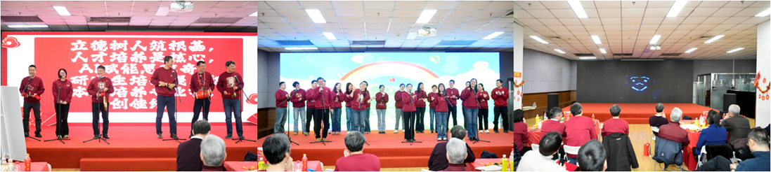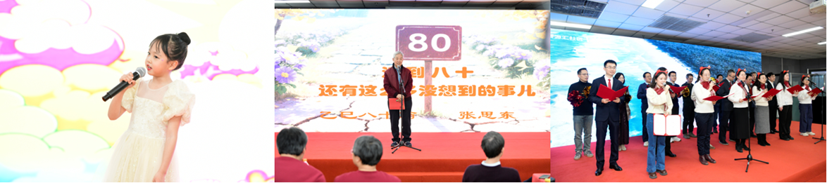 “岁月咏情长”篇,现代通信研究所带来童声独唱《金色童年》,温馨的歌声带领大家重温了纯真岁月;张思东教授带来诗朗诵《八十抒怀》,字字含深意,让人感受到了岁月沉淀的力量;光波技术所合唱《相亲相爱一家人》,温暖的歌声传递出学院亲如一家的真挚情感。