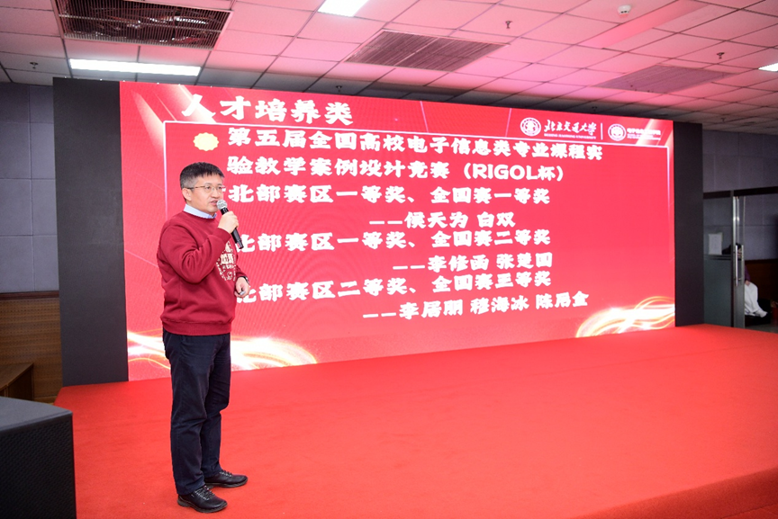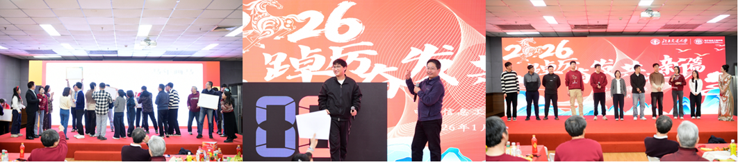 2026年1月7日下午,电信学院在学生活动中心多功能厅举办“踔厉奋发,共谱新篇”2025年度总结表彰会暨马年新年联欢会。本次活动邀请了电信学院历任书记院长贾怀义、张思东、刘云、张宏科、蒋大明、陈后金、唐涛,他们与学院现任班子成员和各系所的教师们齐聚一堂,共同回顾过去一年的奋斗历程,展望新一年的发展前景。