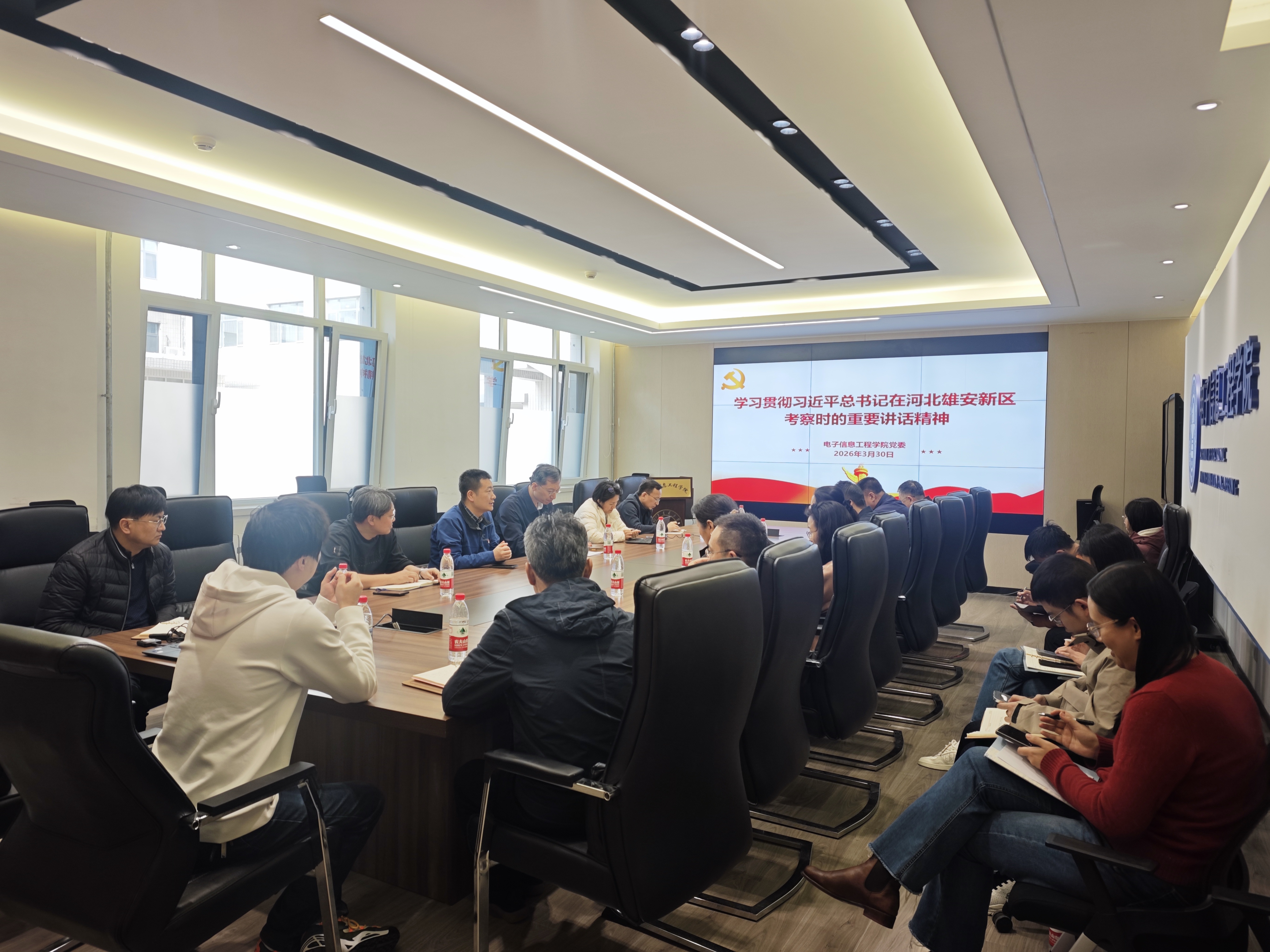 为深入学习贯彻习近平总书记在雄安新区考察时的重要讲话精神,进一步凝聚思想共识、汇聚发展合力,电信学院党委于2026年3月25日召开党委会,专题学习传达习近平总书记在河北雄安新区考察并主持召开深入推进雄安新区高质量建设和发展座谈会时的重要讲话精神,并就学院“一校多区”建设展开专题研讨。