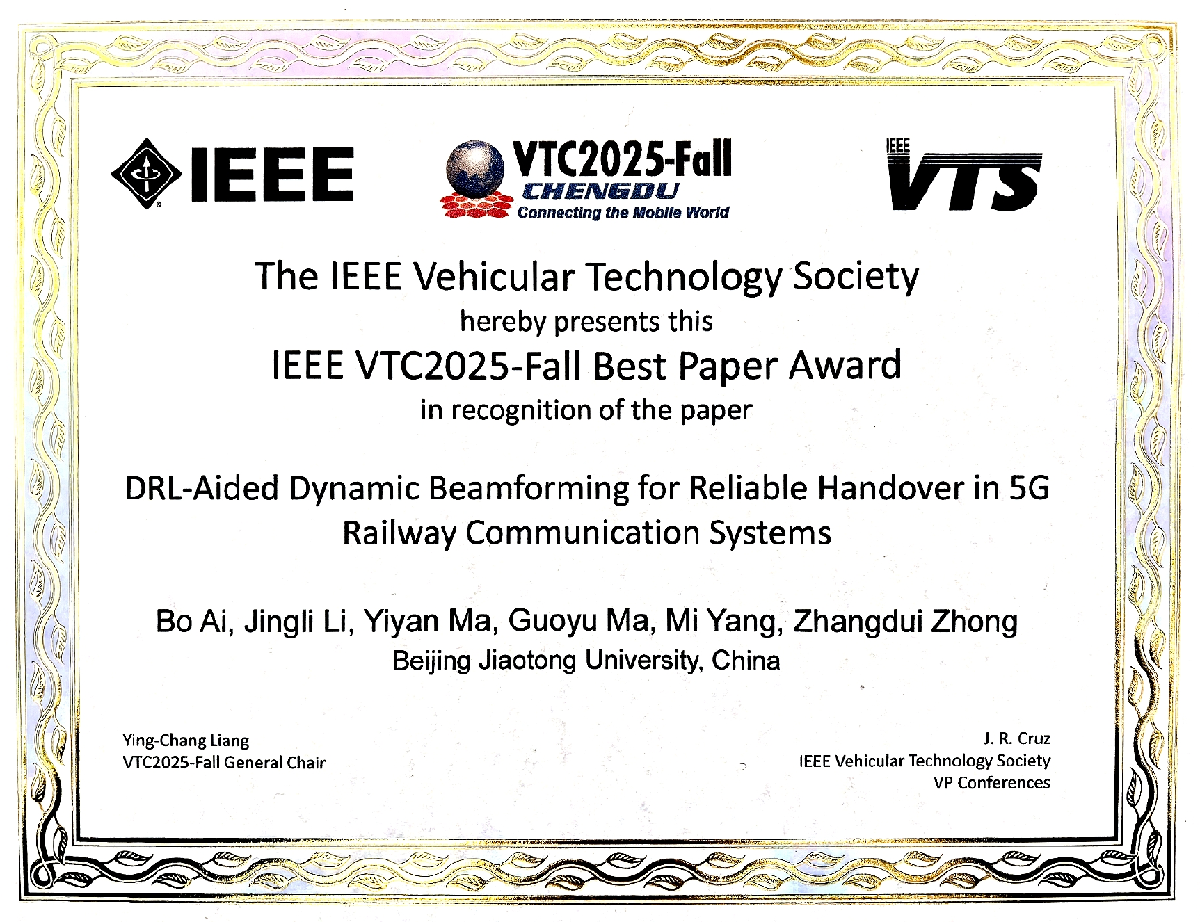我院师生荣获IEEE VTC 2025-Fall唯一最佳论文奖